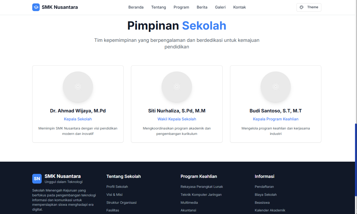 "Akhirnya kami memiliki website sekolah profesional, lengkap dengan portal siswa dan orang tua, serta mengelola semua konten dengan mudah."