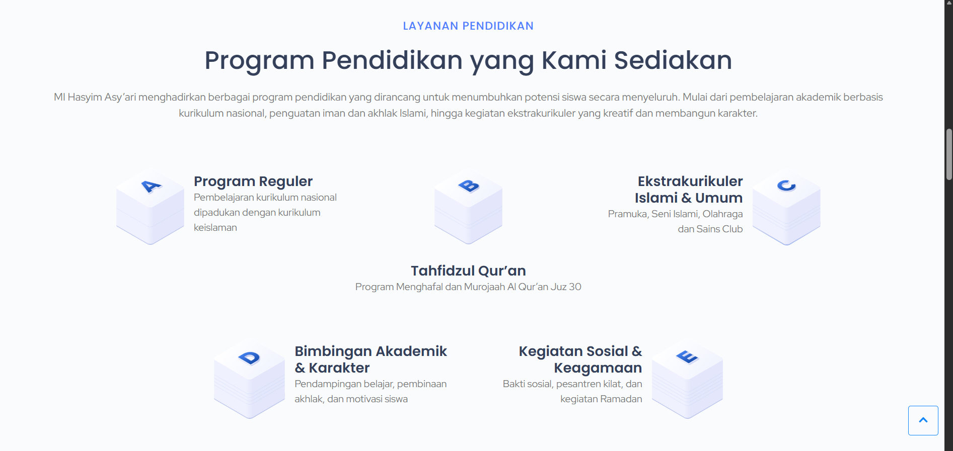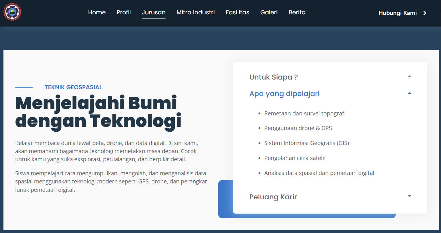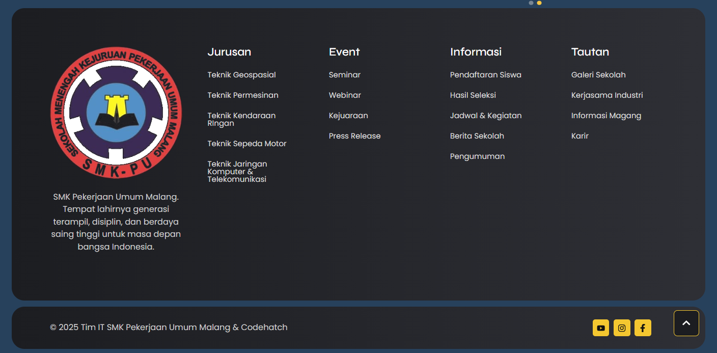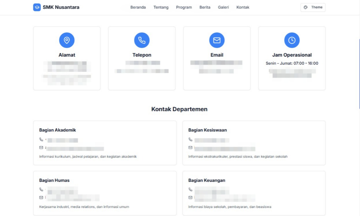 Kami membantu sekolah untuk membangun website profesional. Menyediakan fitur manajemen konten untuk informasi akademik, berita sekolah, pengumuman, jadwal pelajaran, galeri foto & video, visi misi dan tujuan sekolah, menampilkan program kurikulum, kegiatan ekstrakurikuler dan banyak hal lainnya. Website responsif dan SEO-friendly, dengan desain modern dan user-friendly untuk meningkatkan komunikasi dan citra sekolah.