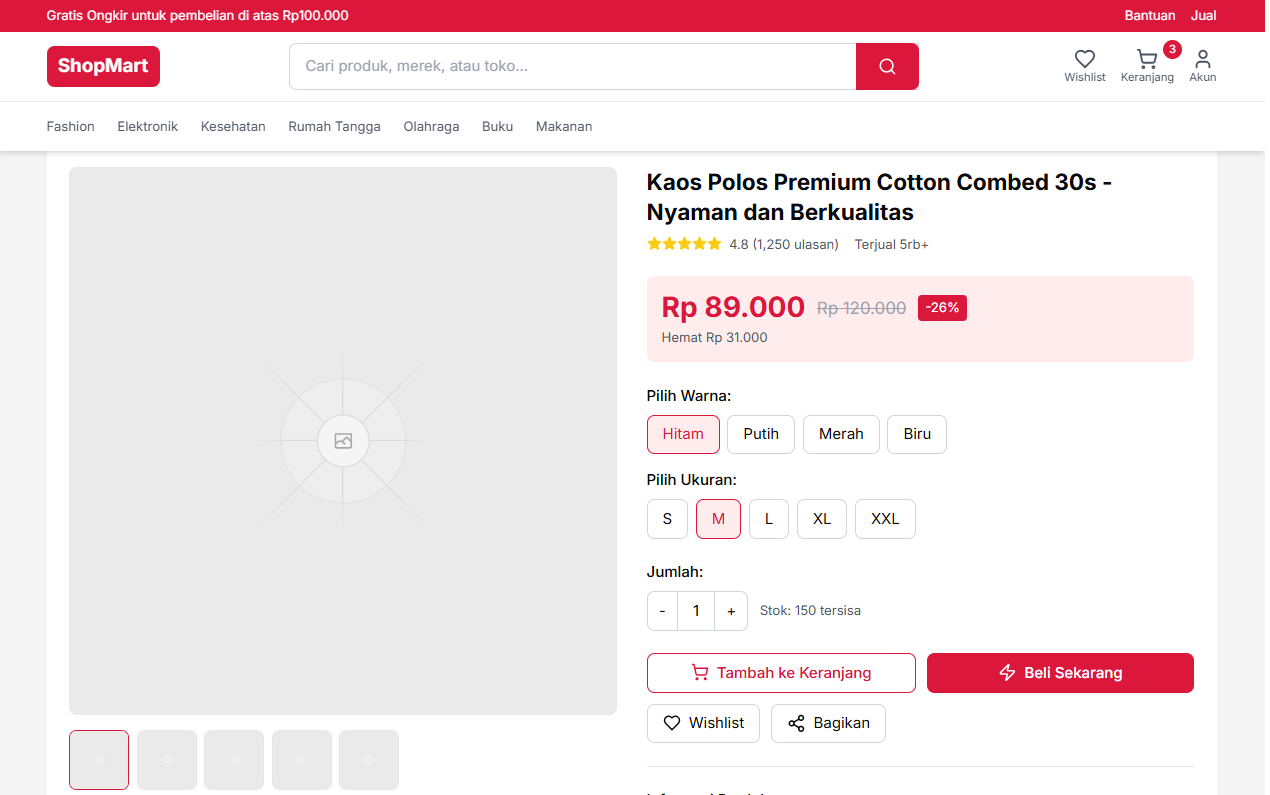 Platform e-commerce modern yang dibangun dengan teknologi terdepan untuk memberikan pengalaman berbelanja online yang optimal. Dilengkapi dengan sistem pembayaran yang aman, manajemen inventory real-time, dan analytics dashboard untuk memantau performa bisnis.