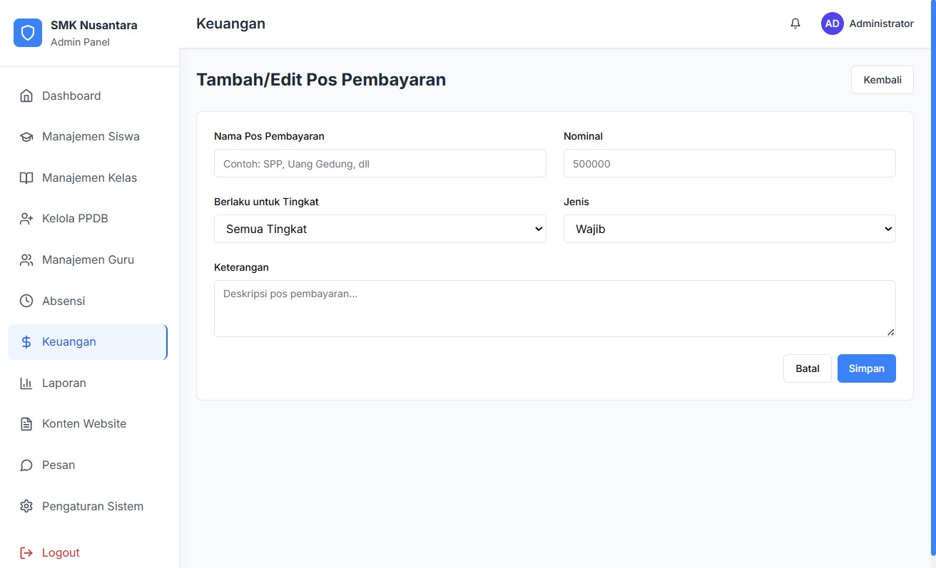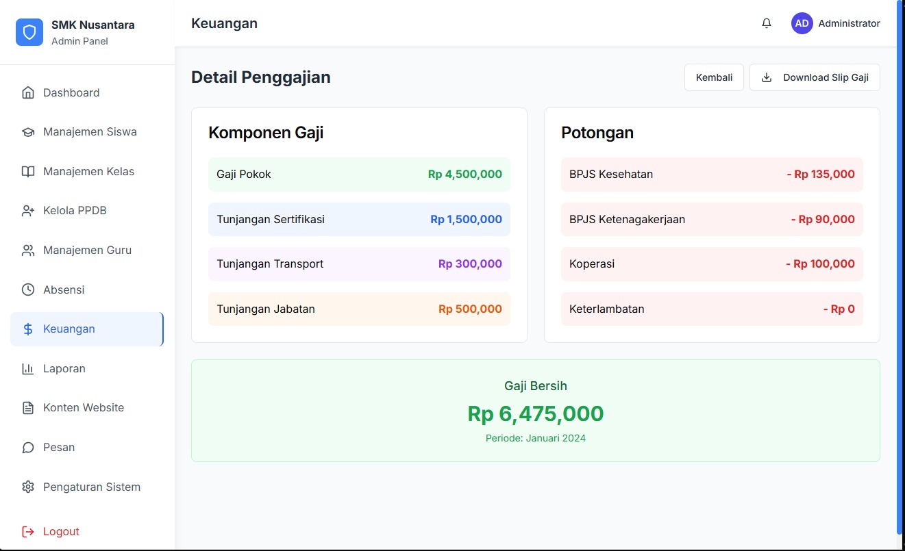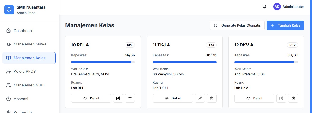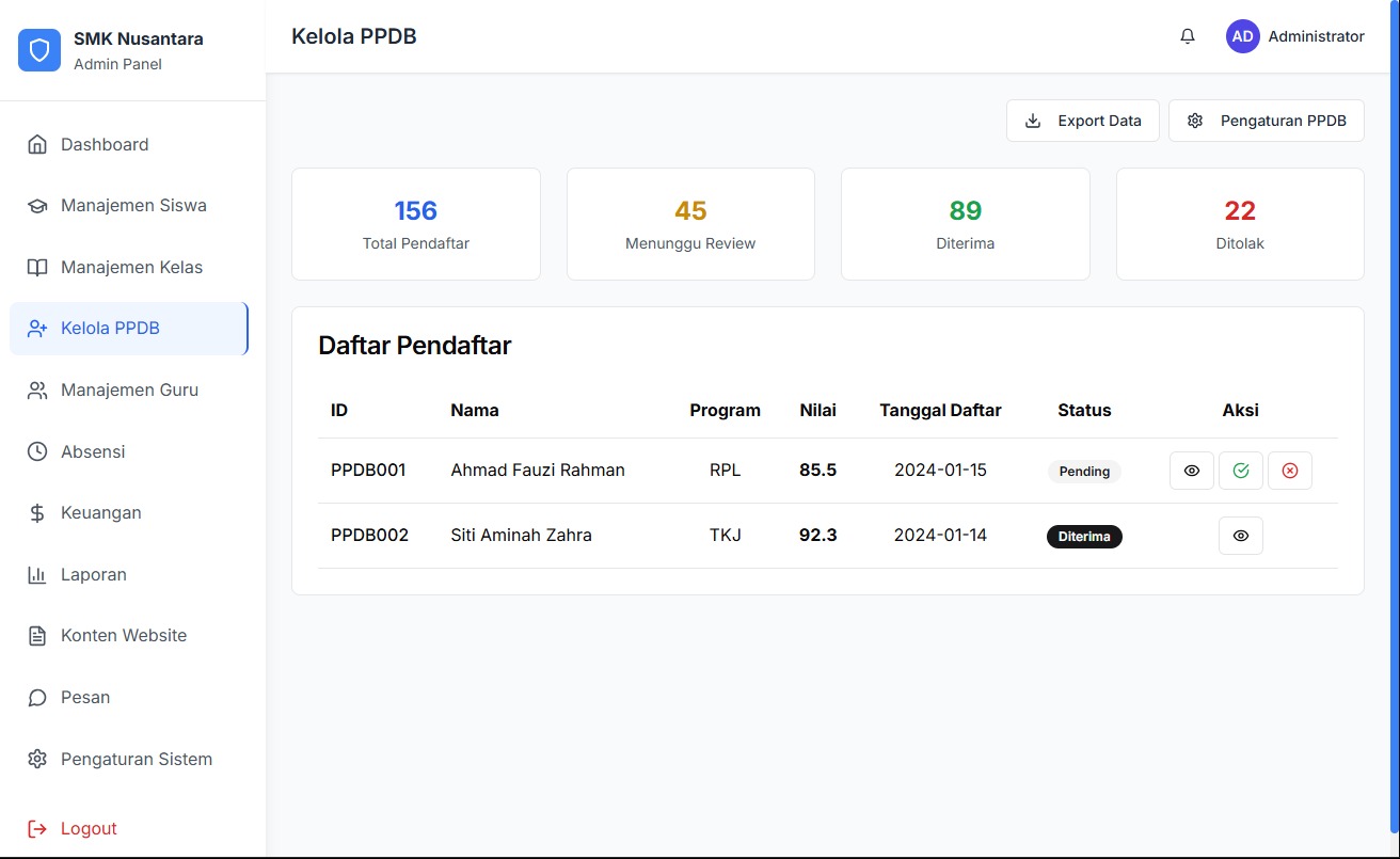 School Information System (SIS) modern berbasis web dan mobile yang memungkinkan manajemen sekolah untuk mengelola semua aspek operasional. Mulai dari data siswa, jadwal pelajaran, kehadiran, nilai, pembayaran, hingga komunikasi dengan orang tua. Sistem ini dilengkapi dashboard interaktif, laporan analitik real-time, serta modul untuk guru, admin, siswa, dan orang tua, membuat manajemen sekolah lebih efisien dan transparan.