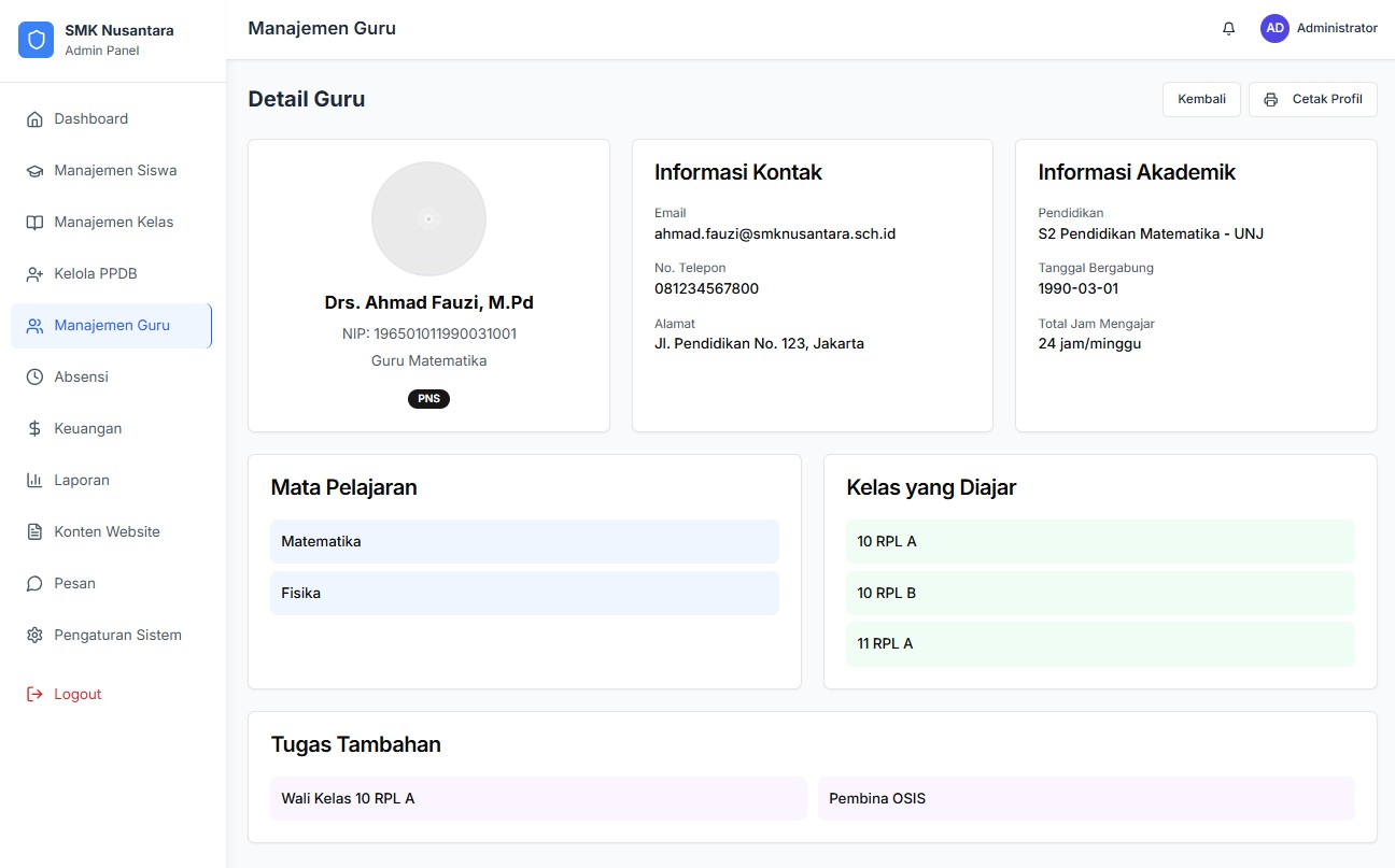 "SIS ini mempermudah seluruh operasional sekolah kami, dari akademik hingga keuangan, dan membuat komunikasi dengan orang tua menjadi sangat efisien."