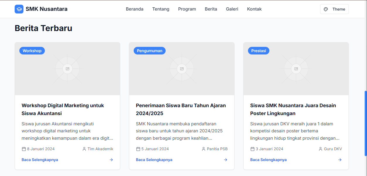 "Akhirnya kami memiliki website sekolah profesional, lengkap dengan portal siswa dan orang tua, serta mengelola semua konten dengan mudah."